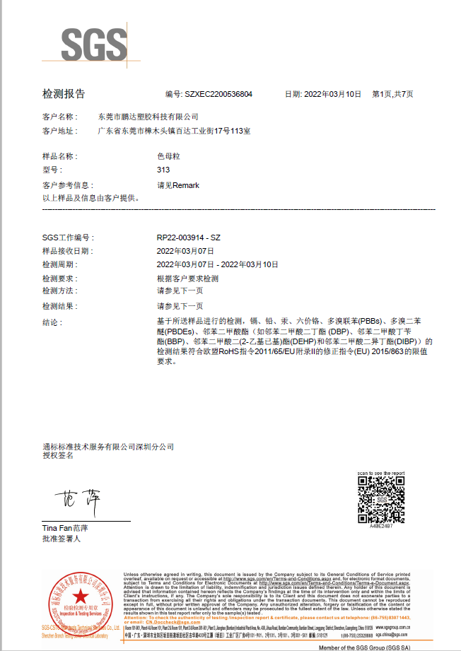 和鵬達塑膠科技有限公司合作很長一段時間了,他們的產品質量好,服務到位,且原材料都通過SGS測試符合歐盟REACH,PaHS、ROHS及無鹵指令,備有美國FDA級食品接觸規(guī)格物料,和他們合作完全沒有后顧之憂!
